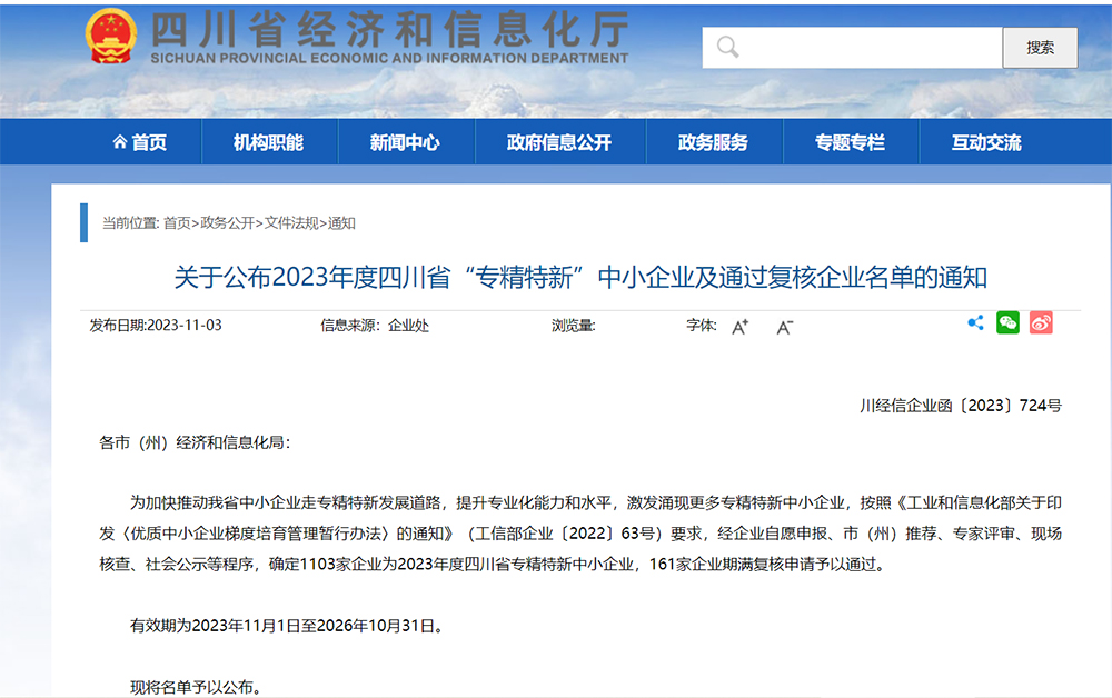 【喜訊】金和時(shí)代恒增公司被認(rèn)定為四川省“專精特新”中小企業(yè) - 標(biāo)志著金和集團(tuán)在“專精特新”發(fā)展規(guī)劃道路上取得重大突破。