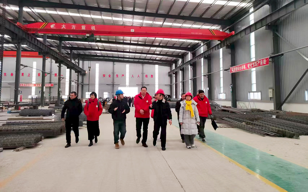 董發(fā)勤教帶領(lǐng)參觀團(tuán)近90人,先后前往公司各廠房參觀。在一期1號(hào)廠房,董教授一行實(shí)地察看裝配式建筑預(yù)制構(gòu)件的生產(chǎn)情況,現(xiàn)場(chǎng)了解我司現(xiàn)有生產(chǎn)工藝與產(chǎn)品品質(zhì)。在新建的3號(hào)廠房,詳細(xì)了解鋼結(jié)構(gòu)技術(shù)及產(chǎn)品在廠房的實(shí)際應(yīng)用和效果,以及該廠房后續(xù)在裝配式建筑和智能建造方向推進(jìn)產(chǎn)業(yè)化布局的規(guī)劃。