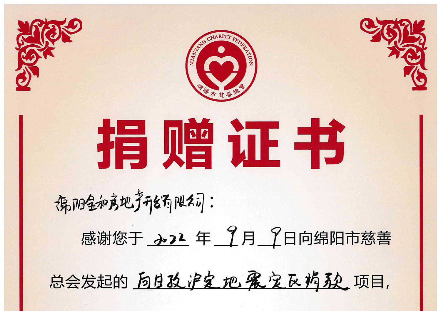 2022年9月9日, 向甘孜瀘定震后捐款
